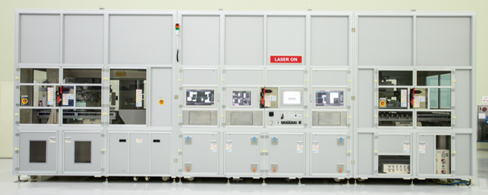 POL Film이 부착되어 있는 Panel이나 OLED Panel을 투입하여 레이저로 POL Film, Shape , Chamfer , Pad , Hole cut 및 Hatching을 하는 자동화 설비