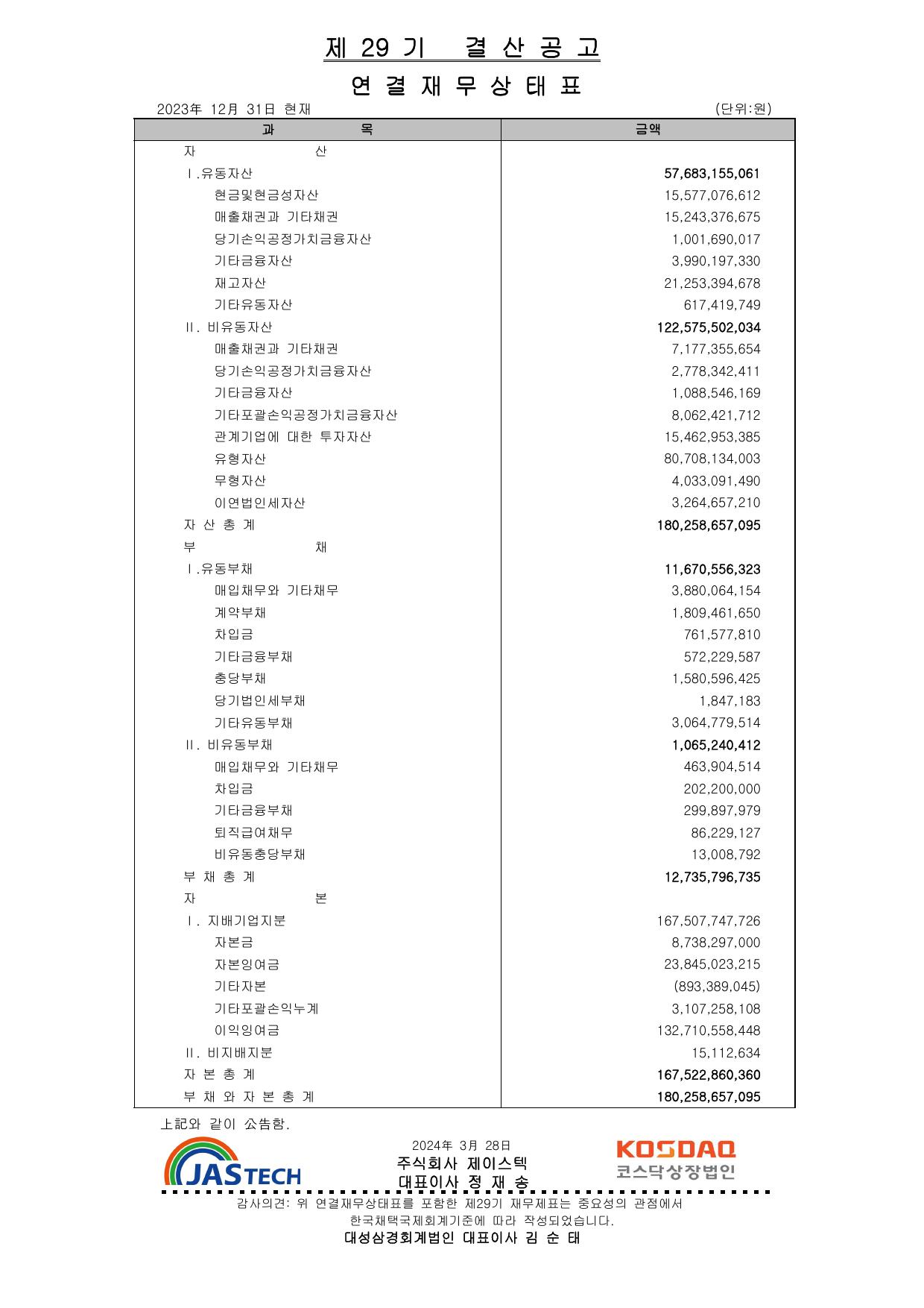 2023년(제29기) 결산공고(연결) 페이지 정보 작성자 최고관리자 댓글 0건 조회 3,163회 작성일 24-03-28 15:56 목록 답변 본문 이전글2023년(제29기) 결산공고(별도) 24.03.28 다음글2023년(제29기) 사업보고서 24.03.21 댓글 0 댓글목록 등록된 댓글이 없습니다.