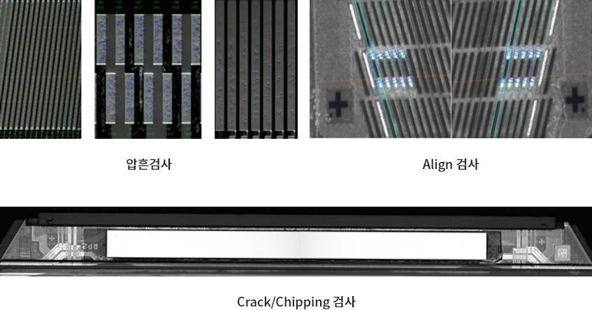 COG/FOG 등 압착 공정 이후, 도전볼 강도 및 수량/길이/산포 등을 측정하여 정상적인 압착 상태를 자동으로 검사하는 시스템
